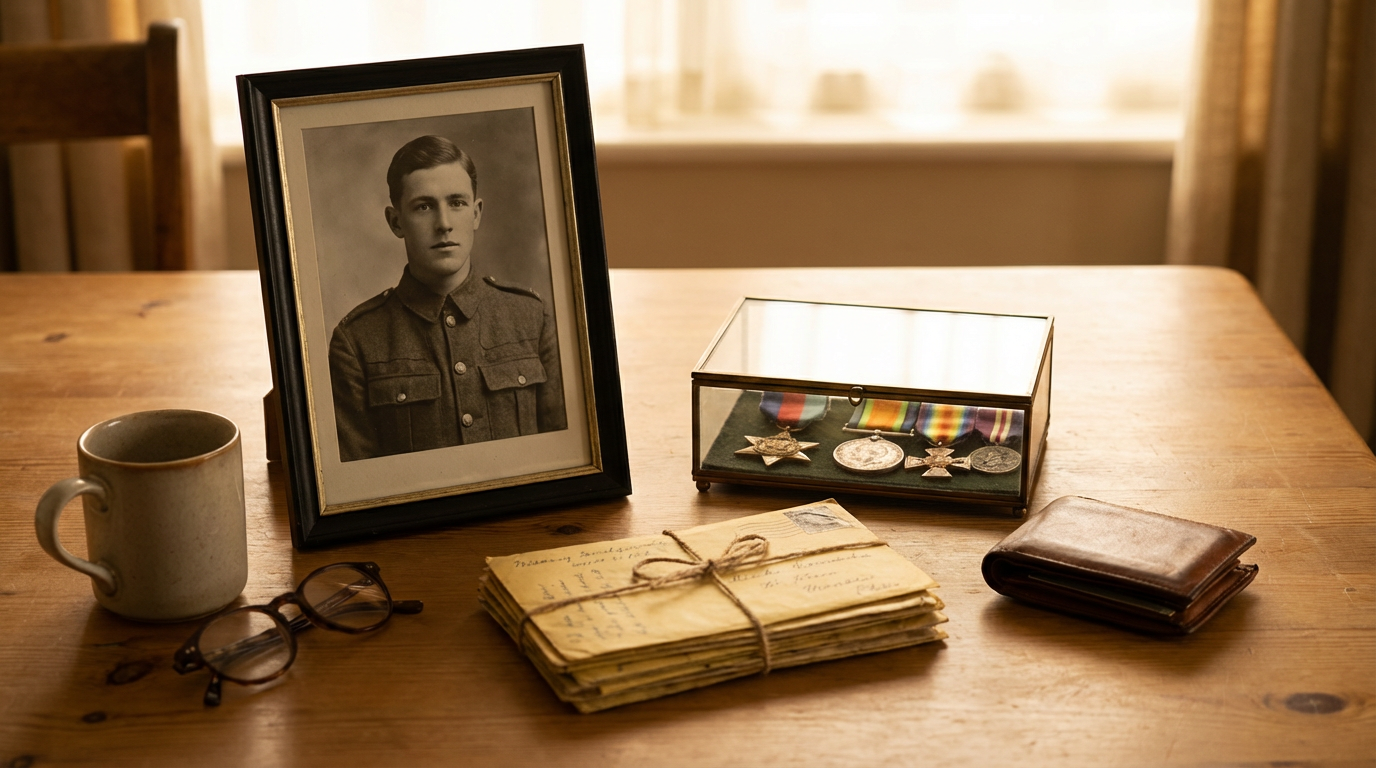An old army photo was damaged in a move. After AI restoration, it was flat again and the insignia looked clearer.